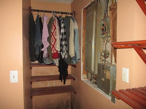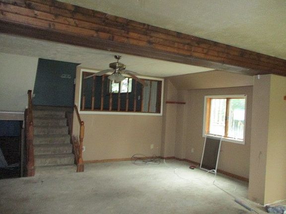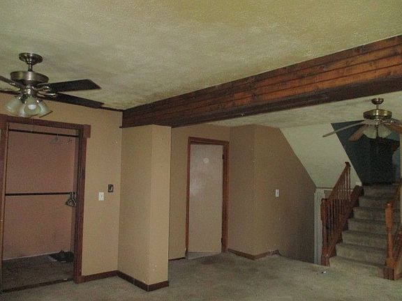 Lower level family room, open living, kitchen, up a few steps are 3 bedrooms and bath. Covered deck on front, deck off back. Small kitchen