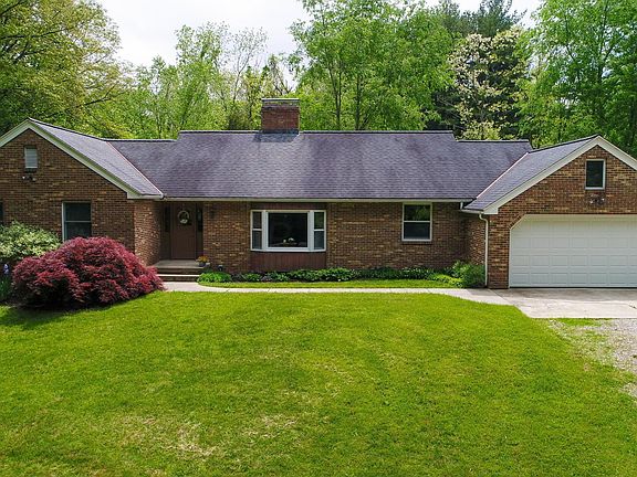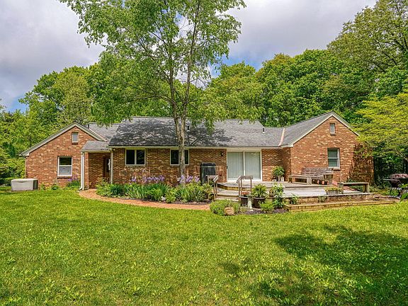 REMARKABLE HIDDEN GEM....Never before seen! 6+ wooded acres, ALL BRICK ranch home with 4 bedrooms 2.5 baths, a full finished basement, and a whole house generator. The custom kitchen boasts a Jenn Air range & wall oven, soft close cabinets w/under mount lighting. Two brick fireplaces, gas in the kitchen/family room area, wood-burning in the finished walk-up basement. The finished lower level offers approx. 1500 sf of additional living space. The (28x70) 3 car detached garage is complimented with electric and concrete floors. There is also a separate heated workshop with a bathroom and utility sink, plumbed for a shower! The adorable brick shed offers concrete floors and a skylight! Running a business, need garage space-this one is for you! SOLD AS-IS! All buyers to be pre-qualified.