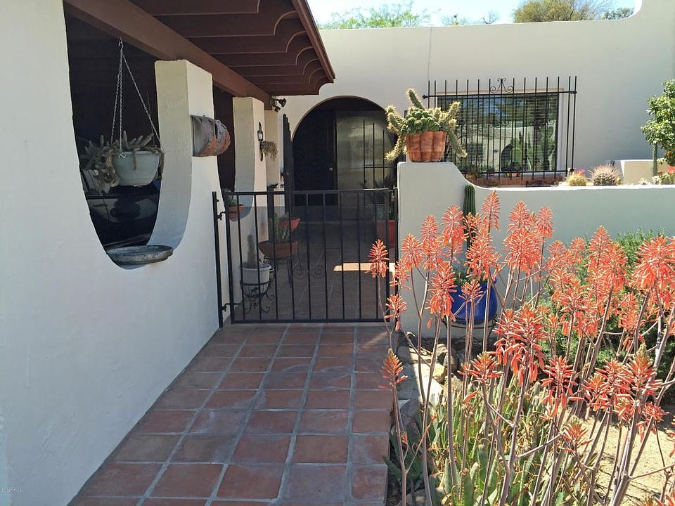 Tucked into a small, charming neighborhood near River & Campbell, close to Farmers' Market, Trader Joe's, great restaurants & the River Walk. This is the perfect location for a great lifestyle. Large open rooms, beehive fireplace in living room, heated & cooled Arizona room overlooks beautiful natural mesquite bosque. Eat-in kitchen with views of the Catalinas. Tile floors throughout living area. Master bedroom overlooks patio. This is one of most pristine homes you will ever see. Beautifully maintained & ready to move into. The community pool (heated in winter) is surrounded by lush vegetated grounds--enough to make you feel you are on a tropical holiday.