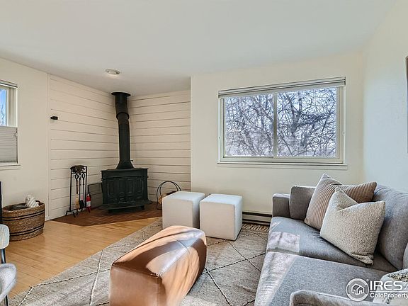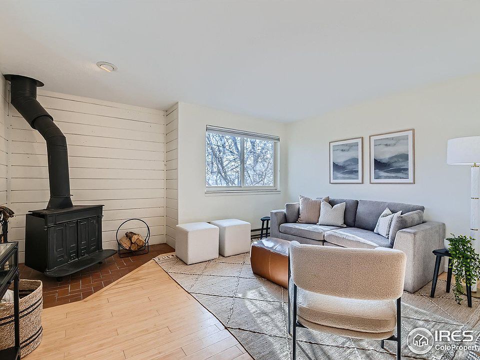Come see this South Boulder beauty! Morning light streams in to this 2 bed/1 bath charming unit featuring wood floors, beams, a wood-burning stove, built-in shelving, new interior doors, in-unit washer and dryer, and oversized 1 car detached garage (#22 to the west of the property). Stainless steel appliances in the kitchen, and there's even room for a breakfast table. Steps from trails and siding to a greenbelt means you can readily nature bathe every day. Easily hop on a bus to go downtown, to Denver, or to the airport. Or take a short stroll to the Table Mesa shopping center where you'll find Whole Foods, King Soopers, numerous shops and restaurants, and the ever popular Southern Sun. Don't miss the opportunity to make this your new home!