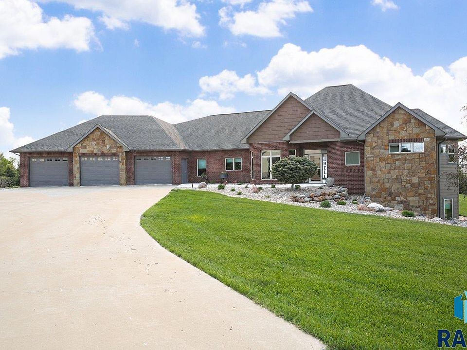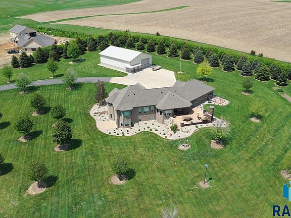 Start living a life of peace & tranquility, away from chaos & noise of city life, at this executive ranch walk-out home on 6.8 treelined acres! Live perfectly situated in the BV school district on a paved road, minutes from Brandon & SF. This 3-4 bdrm home offers timeless luxury with upgrades galore. A spacious chef’s kitchen with Thermadore stove & inset rustic cherry cabinets opens to the living space & overlooks the breathtaking views beyond the patio doors. Natural light floods the primary suite with attached bath/laundry & heated floors. Entertain like never before in the full theater room with custom seating & over $100,000 in prof. equipment. The lower level has a full wet bar, 9ft ceilings & 2 more bedrooms. The outdoor living options include a wood-fired pizza oven, built-in grill & smoker + outdoor fireplace. The 64x46 shop with heated floors, 3/4 bath, & kitchenette is a great bonus! Security abounds with video, intercom, & driveway alert system.Owner is a licensed SDRealtor