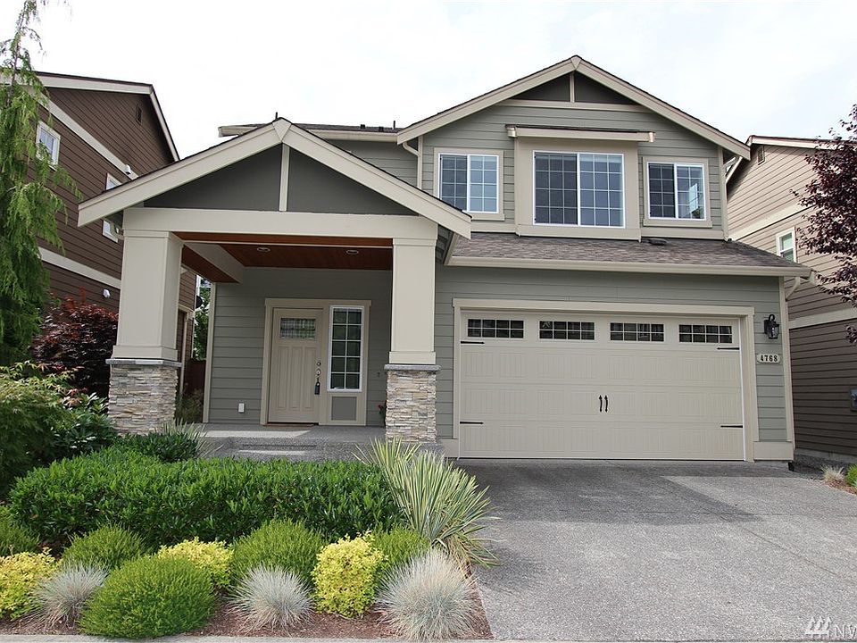 Perfectly located in Harbour Pointe w/ award winning schools! The main floor features beautiful hardwood flooring, craftsman style wood kitchen cabinets, gas range, granite counters, & tile backsplash. All appliances included. Family rm w/ stone surround f/p & wood mantle, 9 ft ceilings. Master bath w/ separate soaking tub & shower, dual sinks, & tile countertops. Bright walk in closet. Awesome checkered garage flooring & garage lockers/ cabinetry included! Walking distance to restaurants.