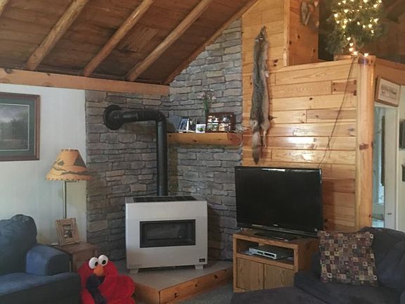 Family Fun Spot, walk to the AuSable River, Ride the shoulders to 1000's acres of Federal and State Lands. Cute perma-log cottage sets back from the main road, open knotty pine ceiling, open loft, sleeps 6 easy, LP gas floor heater, large open kitchen-dining-living area, large bath, Washer and Dryer. Metal roof, extra insulation. You will be pleasingly surprised when you view this home and property. Great Price. Gazebo will be removed.