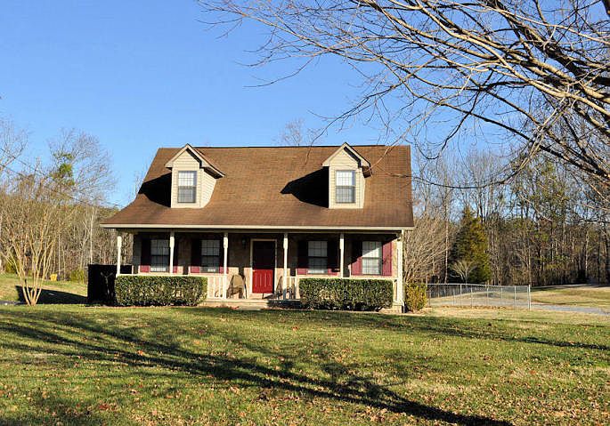 Country setting with convenience in this 3 Bedroom, lovely cape cod home featuring a Master on the Main level, absolutely huge spare bedrooms, gorgeous hardwood floors throughout main level, formal dining area, well-equipped kitchen, a covered front porch, a perfect outdoor entertaining space with its massive deck overlooking the private and secluded, fenced-in backyard, a detached 1 1/2-car garage w/workshop and 1-car carport. Backs up to the woods in a country setting yet only minutes away from Interstate and other roadways.