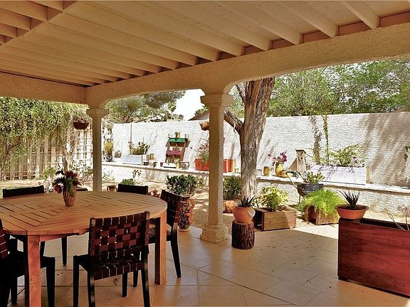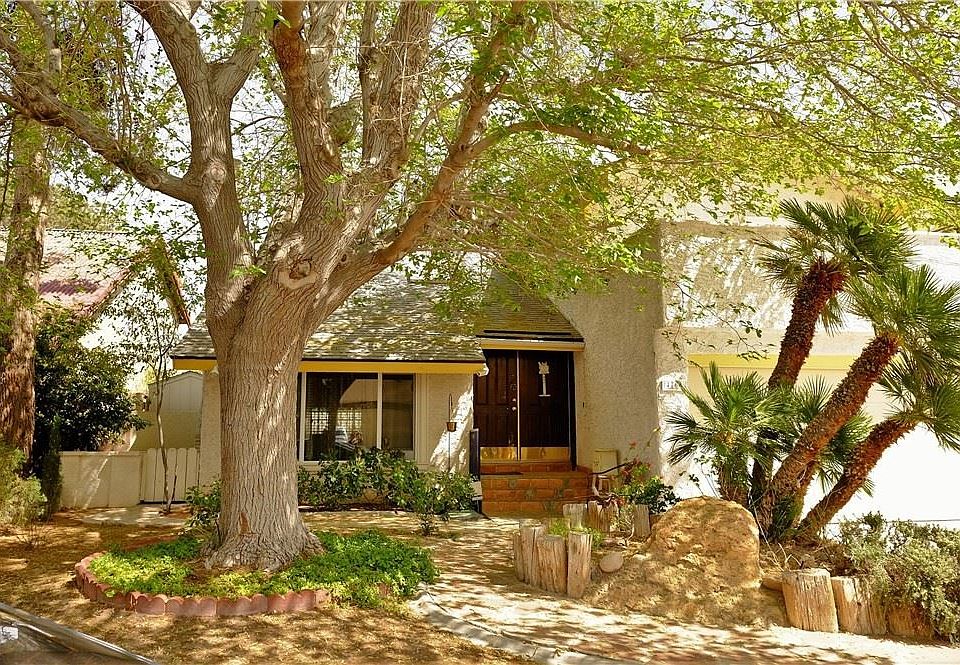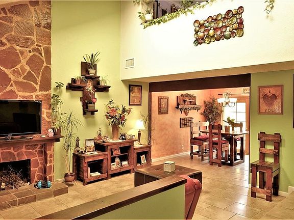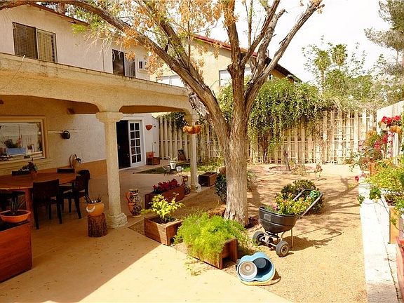 Beautiful 3 bedrooms and loft home almost 2000 sqft with separate living room with fireplace, vaulted ceilings and tile flooring. Family room with bar takes you to the peaceful backyard and the big covered patio. Primary bedroom has a balcony, high ceiling and tile flooring. From the dining area with French doors you get to the backyard with mature trees and a community trail for your walking delight. Come enjoy this great community with everything it offers from tennis courts, community pool and spa, park, RV parking and centrally located only minutes away from the Strip and plenty of shopping.