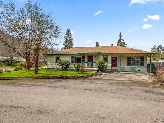 Fabulous 3 bed, 2 bath rambler in picturesque Oakridge! Close to much of the best of Lane County's recreation, with mountain biking, fishing, hiking, and skiing minutes from your front door! Home is nestled on a large 0.35 AC quiet corner cul-de-sac lot, with endless improvement/development opportunities in the HUGE backyard with views of the mountains beyond. SEE ATTACHED DOCUMENTATION from City of Oakridge. Large double gate in yard for RV access- possible income opportunity to rent RV spaces, and more! Short walk to the middle fork of the Willamette River, and local parks. Two living areas directly off of the front entrance, with a toasty pellet stove in the living room. Galley-style kitchen with ample storage. Cozy carpet in bedrooms, with hard surfaces in main living spaces. Listen to the river from your covered front porch! Great family home, or possible rental/airbnb!