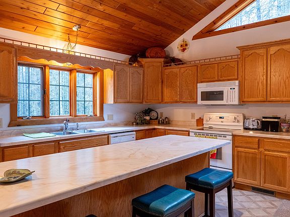 ONE MILE SOUTH OF EAGLE RIVER!! Discover the perfect blend of space and convenience with this delightful split-level home, ideally located close to town. Featuring 3 bedrooms and 2 baths, this residence offers a versatile layout ideal for family living. The upper level boasts a great room and kitchen with oak cabinets, a living room with a gas fireplace, and a spacious deck. The lower level has a pull-in garage that could be converted to more living space. Make this charming well-maintained house your new home today!