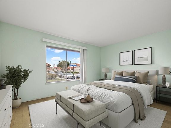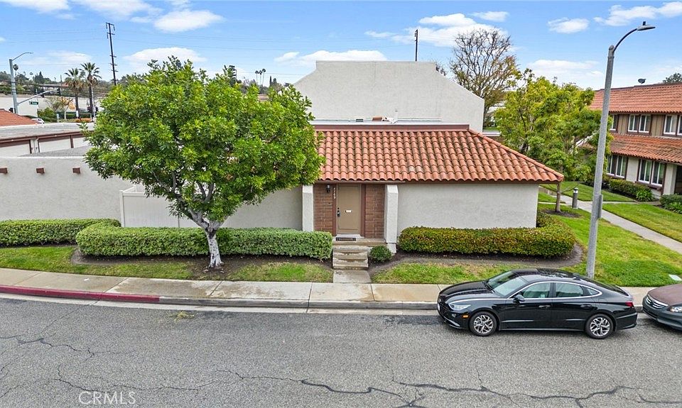 Excellent END UNIT, SINGLE LEVEL townhome in the most coveted location in Buena Park! This peaceful and quiet Casitas Californias community offers wonderful amenities such as a Clubhouse across the street with a remodeled interior/meeting room with kitchen and fireplace, 2 swimming pools and an outdoor spa, lush landscape, sidewalks and close to golf courses, restaurants and shopping. This lovely end unit townhome is unique because it faces the street as a house would. It has 2 spacious bedrooms and 1 bathroom and the primary bedroom offers a large walk-in closet. The storage allows for a large floor-to-ceiling linen closet and a generous entry guest coat closet. The kitchen enjoys a breakfast bar, ample cabinets and the refrigerator, washing machine and clothes dryer are included in the sale price! The living room and dining area look out onto the private, gated courtyard featuring a nice garden area and patio which will allow for entertaining family & friends. The detached 2 car garage is steps away and has convenient, direct access into the private courtyard. Interior has been virtually staged.