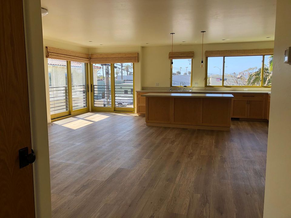 Brand new detached renovated apartment. Upstairs spacious open floor plan with ocean breezes. Includes dishwasher, stove, fridge, washer, and dryer. Also a garage and a half for bikes and surfboards. 3 blocks to the beach and the OB farmers market. Many other amenities to walk to...Azucar, OB Beans, OB Meat Company, OB Hardware, Rite-AD, Target, Post Office. Please email me for a viewing. Water, gas and electric are not included. Also no smoking or pets. There isn't any outdoor space but the apartment has two slideing doors that open.