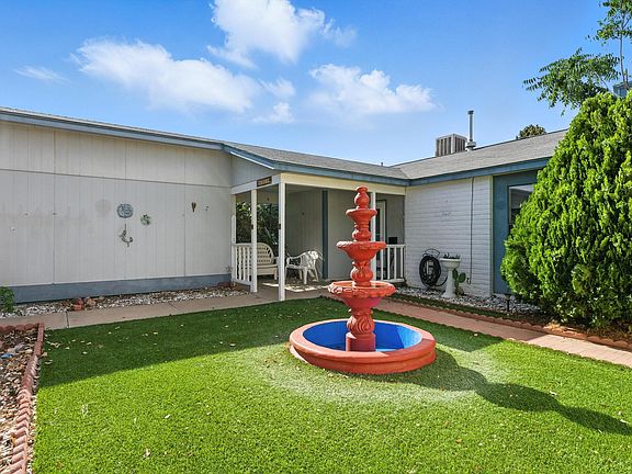 Charming 2-bedroom, 2-bathroom home featuring a peaceful courtyard with a soothing water fountain--perfect for relaxing or entertaining. Enjoy both covered front and back patios for year-round outdoor living. The property also includes a detached single-car garage and additional outdoor storage. A cozy and well-maintained gem with great outdoor space! Newer roof, water heater and tile flooring.