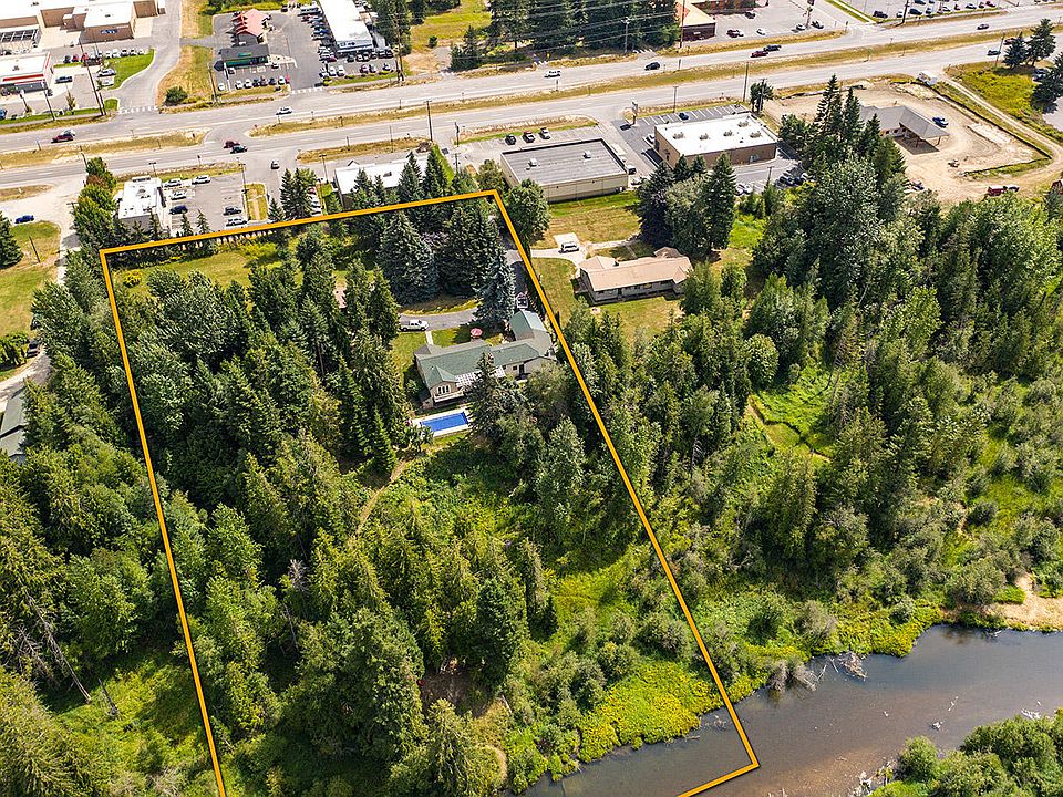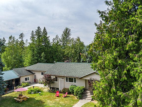 Rare residential/commercial acreage offering in the heart of Ponderay with frontage on Sand Creek. Here's your unique opportunity to live on your commercial property with direct access to Hwy 95. The 4-bedroom, 2-bath home boasts an open floor plan, large kitchen, two fireplaces, loads of storage, gorgeous views, swimming pool and an attached 2-car garage with extended carport currently used for at-home business. Secluded from traffic but directly accessible to Hwy 95 via a 30' easement, commercial zoning allows a multitude of uses, from storage units to RV sites - buyer to verify their intended use. All on 5.1 acres with gated entry, very close to services and Schweitzer Mountain Resort with access to Lake Pend O'Reille via Sand Creek.