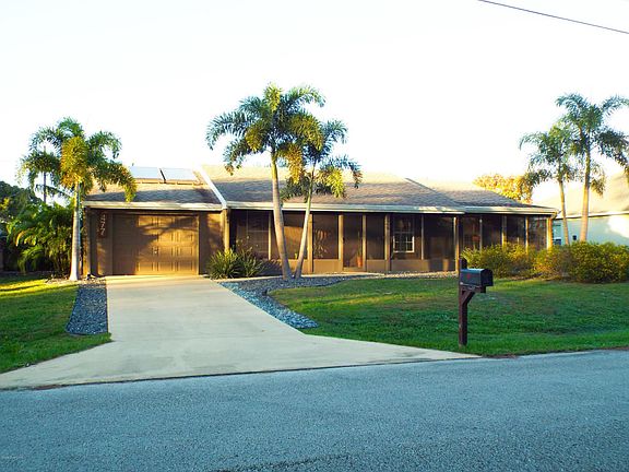 This is a tropical paradise in Palm Bay. It seriously does not get any nicer than this. Palm trees, beach-like crushed coquina rock, pool, slate rock beds, and privacy fenced yard. Inside, everything was completely remodeled only 3 years ago. Granite and cabinets in kitchen and both baths. Tile everywhere. Custom designed shelving in the living room. A/C is just 3 years old. Water treatment system is just 3 years old. Super quiet neighborhood. Florida cypress preserve directly across the street.Of all the homes you'll see in Palm Bay, this is the one you'll fall in love with. Do not hesitate!