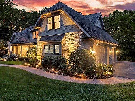STUNNING custom 1.5 sty in the Bluffs at Hoene Springs! Dramatic curb appeal w/stone front, 3-car side entry garage, prof. landscaping/lighting & large covered porch. Walk inside to high ceilings, refinished wood floors, elegant finishes, updated lighting & neutral tones. Entry foyer flanked by formal DR w/curved archway. 2-sty great room includes vaulted ceiling, recessed lights, WB FP & access to a composite deck via french doors. Elegant, gourmet kitchen improved w/comm. gas range, custom cabinets, comm. fridge, center island w/butcherblock top, breakfast room & subway tile backsplash. Main floor MB suite has large MB w/dual vanities, large soaking tub & custom tiled shower enclosure w/steamer. Upstairs is a 2nd MBR w/bathroom en suite, 2 add. BR's & 3rd full bath. W/O LL is prof. finished w/FR, gas FP, rec area, full bar/kitchen, 5th BR, full bath & tons of storage. Out back you'll find a stamped patio, grilling area, covered seating area, built in firepit & amazing views! RSD.