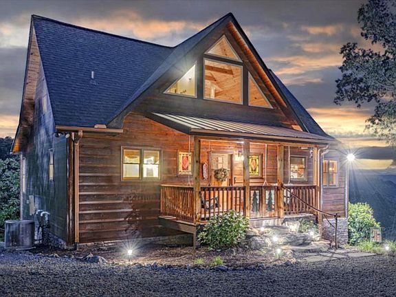 Welcome to this EXQUISITE CUSTOM-DESIGNED LOG-SIDED MOUNTAIN RETREAT nestled on 2.8 serene acres with LOVELY MOUNTAIN VIEWS. Thoughtfully crafted for both comfort and elegance, this unique property blends timeless mountain cabin design with modern amenities. The main cabin features 3 spacious bedrooms, 3 full baths plus a half bath, a soaring loft, and multiple living and entertaining spaces including a Media Room (to binge watch TV), Game Room with Pool Table and Bunk- Room. A separate, beautifully appointed CUSTOM GUEST COTTAGE with a 4TH BEDROOM, awaits you and your guests. Recent upgrades include a new roof in 2021, a brand-new HVAC system, and water heater in 2025. The expansive, light-filled interior showcases a CHEF-INSPIRED KITCHEN with generous seating for 8 - perfect for entertaining or family gatherings. There's a timber-framed carport and plenty of guest parking. Spend special evenings around the fire pit toasting marshmallows or soaking in the tranquil surroundings and fresh mountain air. Conveniently located just 11 miles to shopping in Blue Ridge or to Lake Blue Ridge Marina, and 15 miles to Blairsville or Cozy Cove Marina on Lake Nottely. Perfect for a LUXURIOUS VACATION GET-AWAY or FULL-TIME MOUNTAIN LIVING at its finest, with no steep roads. Includes a 1-year home warranty. Don't miss your chance to own this one-of-a-kind mountain paradise. FURNISHED. PRIMO CONDITIION. PRICED RIGHT!