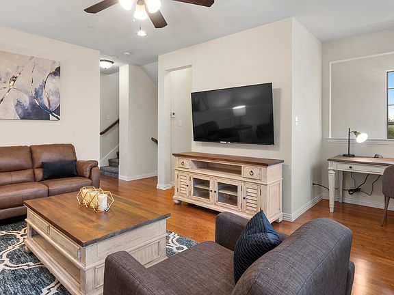 This FULLY FURNISHED, 3 story, executive townhouse has high vaulted ceilings, excellent natural lighting and a HUGE private yard beside a field. It's in a quiet and upscale community in a fairly new and vibrant, centrally located north of Dallas, with easy access to downtown Dallas, DFW Airport, and not far from Legacy West, Frisco and Plano. It's a family and 'work from home' friendly accommodation, you can cook your favorite meals in a gourmet kitchen with large island that opens to the living & dining area for family gatherings. Relax & unwind in the spacious master retreat with modern ensuite bathroom & large walk-in closet. The primary suite boasts dual sinks and a spacious walk-in closet. The whole space is upscale transitional decor with sturdy furnishings throughout. It offers a private back yard and attached 2 car garage. You'll feel right at home! The first level is set up as an executive office and as a secondary living area. Primary suite on main (2nd) level with Kitchen dining and living. 2nd and 3rd bedrooms on 3rd level.