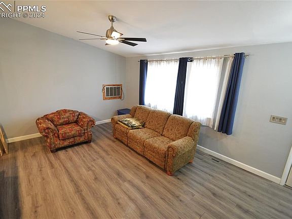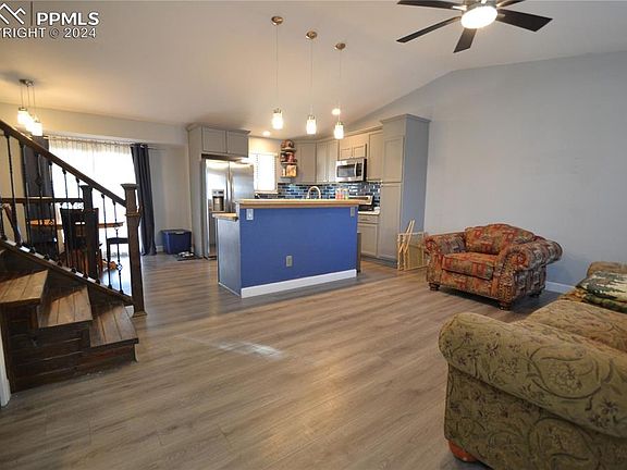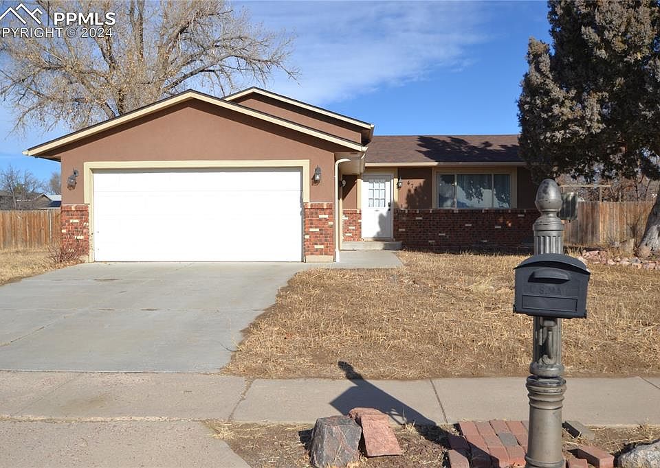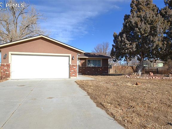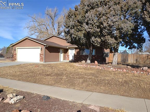 Charming 1974 stucco home available in the tranquil Fountain area. This delightful residence offers three bedrooms and two bathrooms, providing comfortable and spacious living. The lower level features a generously sized family room with a wood-burning fireplace, creating a warm and inviting atmosphere for gatherings. The property boasts a vast backyard adorned with a covered patio and a rear fence, ensuring privacy for outdoor activities. Well-established pine trees at the front enhance the curb appeal and provide a touch of natural beauty. Convenience is key with this home, as it is strategically located close to schools, shopping centers, restaurants, and both Fort Carson and Peterson Air Force Base. Sunlight floods the interior, highlighting the hard surface floors that run throughout the home. The kitchen is designed with a lovely layout and includes a dining area, providing a perfect space for meals and entertaining. The dining area offers a seamless walkout to the expansive backyard, enhancing the indoor-outdoor flow. The primary bedroom is a retreat in itself, offering ample space, a sitting area, and extra closet space. The two spare bedrooms are generously sized, providing flexibility for various needs. A well-appointed laundry room adds to the functional aspects of the home. Parking is a breeze with a two-car attached garage that offers plenty of space. Be sure to check out the virtual tour and then make your appointment to see the home!