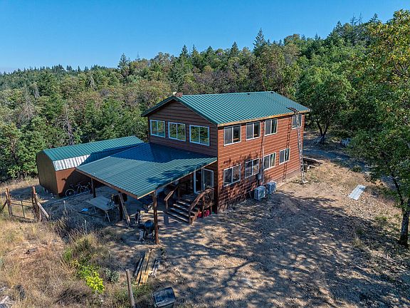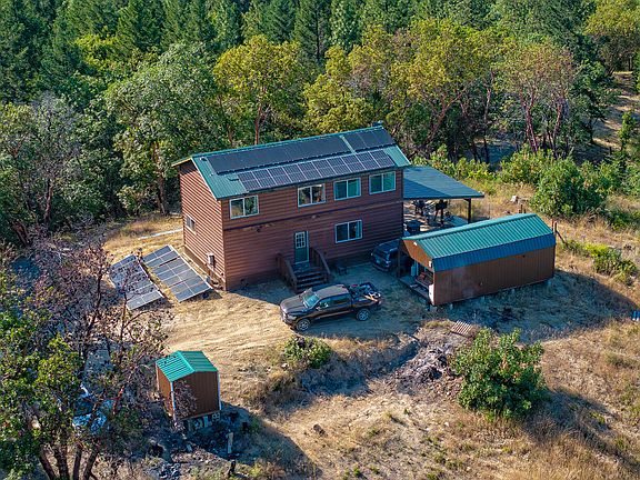 All offers considered! Location, location, location!! Looking for a custom built 1700+ sq ft two story home in a private location overlooking the mountainside (270-degree views)? If so, this is the one for you! Built in 2020, this 2-bedroom, 2.5-bathroom solar powered (owned outright & 20+ panels) property features 8+ acres, open floor plan, high end finishes, cedar countertops, large windows throughout, metal siding, metal roofing, spacious living room, tiled walk-in showers, covered patio, gated entryway, fenced garden space (96 fruit trees), 60 gpm well, & much more! Per seller, there is a second homesite on this property (well can easily be hooked up to this location). Detached 14x28 shed (electric and water installed) on the property is perfect to utilize for all your workshop needs as well! Such a rare opportunity to obtain so much at such an affordable price, so contact your agent today for a personal tour, before it's too late!