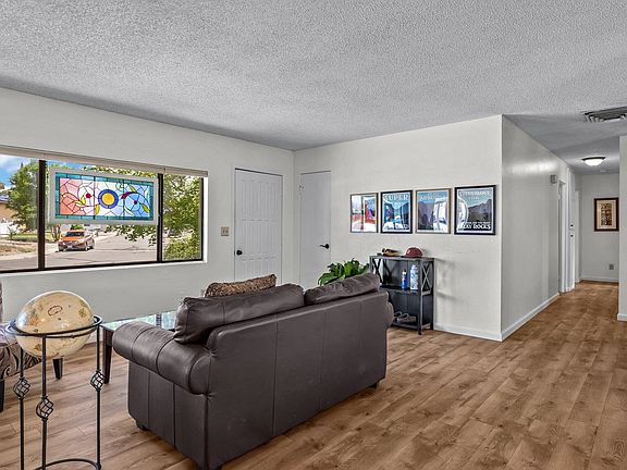 Check out this charming, thoughtfully renovated 3-bedroom home on a spacious 0.32-acre lot with irrigation water, perfect for outdoor enthusiasts. It features an updated, tiled bathroom and a modern kitchen with hickory cabinets and stainless steel appliances. It even includes a washer and dryer. New flooring throughout, adds a fresh, contemporary feel. The exterior boasts newer paint, a detached 1-2-car garage. Ideal for comfortable living with ample outdoor space. In front is growing Sycamore tree, which will become a majestic neighborhood landmark in time, it is well placed for generations of shade. The serene, large back yard with a mature, but not elderly cottonwood, is a great space for children and pets. As bonus there are two peach trees, plus various flowers and bushes. The covered back patio enhances the sense of peace. Or hang your own hammock from the Cottonwood!