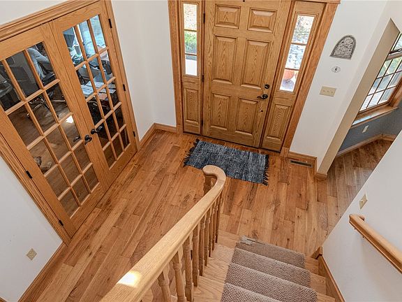 BRING YOUR HORSES! Tranquility prevails here on 13.5 acres with a 2 stall stable, setting the stage for this spacious 4BR, 2.5 bath home. A desirable 1st level great room concept with walls that soar to the 2nd level loft and a 1st level primary bedroom with 12 x13 en suite bath that leads to the rear Ponderosa style porch with hot tub are just a few of the attractive features here. Additional...Walnut floors, solid wood doors, French doors to the den, an effective kitchen design, stainless steel appliances, 1st level laundry & mud rooms & a 3 car attached garage with direct access to the full basement that's ready for another bath. There's ability to access the area above the garage that could be finished too. It's an all electric home with a generator in the stable. Gas is available in the area. Enjoy views of the 5 1/2 fenced pasture combined with the paddock area that has electric fencing from this home that has more than 3,000 sq ft. with space to roam!
