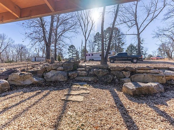 Located just 1.8 miles from the pristine waters of Bull Shoals Lake, this beautifully renovated 2-bedroom, 1-bath home on 6 acres offers the perfect blend of modern comfort and outdoor adventure. Originally built in 2009 and fully updated, the home features vaulted ceilings, granite countertops, and a striking double-sided propane fireplace. The kitchen is well-equipped with a propane stove, dishwasher, and refrigerator, while washer/dryer hookups add convenience. Double-pane windows enhance energy efficiency, and rain gutters are already in place. The open layout creates a bright and welcoming atmosphere, designed for both style and functionality.Outside, this private retreat boasts beautiful rock landscaping, an 8x10 back deck, and a large outdoor rock fireplace perfect for gathering with friends and family. A 10x12 storage shed provides additional space for tools or outdoor gear. With approximately 2 acres cleared and set up for horses or other animals, this property offers plenty of space to enjoy. Located just a mile from Lost Woods Golf Course and surrounded by the stunning beauty of the Ozarks, this home is ideal for full-time living, a weekend getaway, or a recreational escape close to the lake.