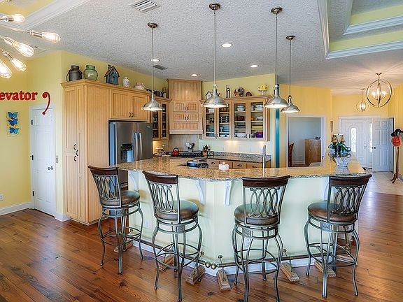 Unbelievable deep water views on this massive almost 4000 sq ft home on Crooked River with elevator! This amazing home has so many incredible features and has many opportunities to add to them! The garage (with huge workshop) elevator takes you up to the kitchen area making it a breeze to unload groceries. A master suit to die for boasts gorgeous river views, access to the huge upper porch with fireplace, an immense walk-in shower with rain drop shower head separate attached sauna, dual vanities plus additional make-up vanity, and a step trey ceiling with a gigantic 12 blade ceiling fan! The kitchen has tons of granite counter space with a large breakfast bar including built-ins and wine rack, dual pantries with one walk-in with pass-thru to the kitchen, and stunning glass faced cabinetry. Cook professionally with the Thermador 36" stainless steel propane convection oven/range. Kitchen has stainless steel appliances including a raised dishwasher and matching wonderful pendant lighting. The common areas boast stunning heart pine hardwood floors, the greatroom features a fireplace with a double step trey backlit ceiling with crown molding! Too many more features to list! Let's cover some possibilities that will put this home completely over the top: The main level of this home (1,510 sq ft) has a full bathroom already installed and is heated and cooled with wiring throughout. This space would make an ideal In-Law Suite, additional bedrooms, or maybe even an insane man-cave! Whatever you choose, it's all ready for your design! For the boating/fishing enthusiasts there is a public boat launch just down the street, however, this lot has dock rights to get you out to deep water! You can see from the drone photos your neighbors docks, floating docks, and boat houses. This property would provide for that, as well! This incredible home is located about 7 miles east of exit 7 on I-95, and is a short commute to Kings Bay Submarine Base, Brunswick, and Jacksonville, Florida! These deep water, elevator homes don't hit the market that often! Don't miss out on this one-of-a-kind gem!