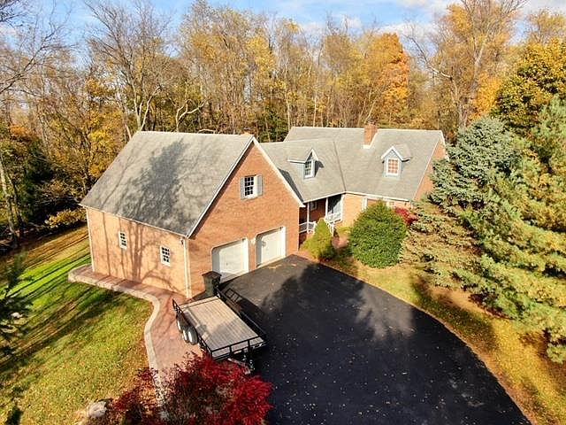 Beautiful custom built home on 1.56 wooded acres. Home features wood plank floors, huge family room with cathedral ceiling, fireplace and French doors leading to a covered porch. LR with fireplace a formal DR, and a convenient first floor bedroom and bath. Kitchen is open with island and lovely large bay window. Upstairs is a master suite with balcony over family room, and third BR with bath. Laundry room is off kitchen. Garage is 2.5 cars with work shop area, and huge upstairs room for hobbies.