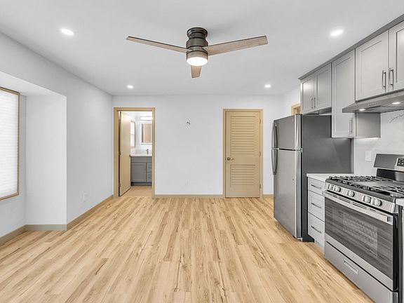 Enjoy an open floor plan featuring recessed lighting, a ceiling fan, and stainless steel appliances that add a sleek touch to the kitchen. The home also includes the added comfort of an in-unit washer and dryer and a private entrance for extra privacy.