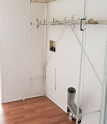 CASH ONLY SALE of mobile home. Purchaser to live in mobile community. THIS HOME IS IN BALATIMORE COUNTY in Liberty Mobile home Park.. Kitchen is bright and cheerful with the sun coming into the home. L shaped kitchen counter with area for stools or for dinette set. Living room adjoins kitchen. Two bedrooms with one bathroom. Shower only in bathroom. Nice full windows. Closets with slider doors. New laminated floors throughout. Small deck and 10 x 12 shed. Parking pad for one car. Washer and dryer in unit. Mobile home and all components sold AS-IS with no warranty. Clean, quiet, and well-maintained community. No dogs allowed. Pad rent is $650 per month. Verizon cable internet available at tenant expense. One-year lease. Rental application per adult is $30 and includes credit check. First month of rent ($650) plus security deposit ($650) due before move-in.