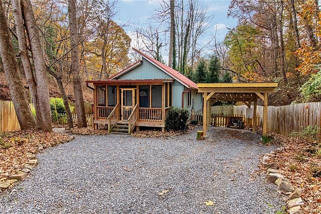 Contemporary cottage in East Asheville! Incredible location, less than 10 minutes to downtown Asheville, VA Hospital, and Mission Health Campus. Built in 2009, this modern home features an open floor plan, master suite, multiple upgrades, and wonderful outdoor living spaces. Beautiful screened-in porch welcomes you into home. Open floor plan offers a modern kitchen with a huge butcher block island, spacious living room and dining area, and bamboo floors throughout. New entrance to bathroom creates a private master ensuite. Entertain on the multi-level deck with hot tub or cozy up on the screened-in porch. Fully-fenced corner lot has mature landscaping, garden beds, and stone details. Ample off street parking with all new carport. Enjoy a short walk or bike to Ultimate Ice Cream, Copper Crown, WNC Nature Center, or the Asheville Recreation Park. Perfect for the first-time home buyer, investor or downsizing, don't miss!