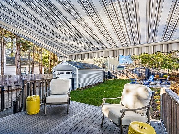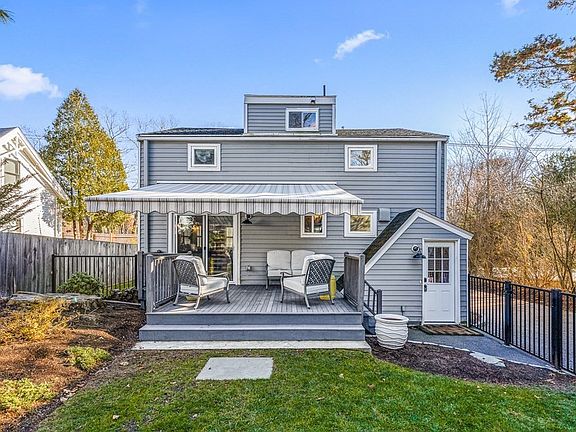 As soon as you enter you will fall in love with this stunning 3 bedroom Cape with impeccable finishes conveniently located in Newton Lower Falls! On the first level the open beamed ceilings add character and charm to the living & dining areas which open to the newer modern kitchen (2015). Enjoy the front to back fireplaced living room which leads you to a great deck plus a new awning and the perfect fenced in yard w/a fire pit. Two beautifully appointed bathrooms (2015), custom closet systems, plantation shutters on first level (2018), and newer light fixtures inside and out. On the lower level you will find a great home office/work out space plus an additional finished bonus room, storage room and laundry room. A spacious one car garage complete this lovely package! This lovely home abuts Wellesley Lower Falls and is only a short walk to many shops, restaurants and the Riverside train! Two blocks to Hamilton Field and nestled between two golf courses. First Open House Dec 5 & 6 1-3 pm