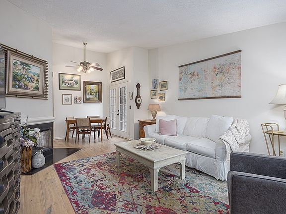 Charming one-level end-unit condo with a private garage! This delightful home features hardwood floors, a granite bathroom countertop, a walk-in closet, and a cozy wood-burning fireplace. Step outside to a private, fenced patio that offers great privacy and opens to a beautiful green space! Conveniently located, just a short drive from shopping, dining, and local amenities.