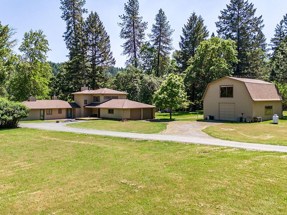 Beautiful Wild and Scenic 4.73 acre Riverfront property two tax lots. Featuring a 3 bedroom, 2 bath home with 2,917 sf. Spacious kitchen with pantry, propane cooktop and oven, electric cooktop, dining area and slider to the deck.