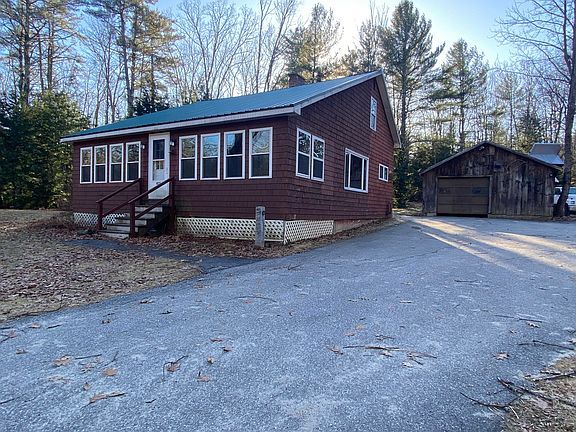 Looking for a fixer upper? 477 Kansas Rd is all about location location location! Property abuts beautiful Sucker Brook. Long Lake is across the street (no lake view). Just a couple miles away are popular downtown Bridgton, Salmon Point beach and boat launch, Naples beach and boat launch. Full service marinas also just mins away in Bridgton, Harrison and Naples. Pleasant Mountain ski resort 10 mins away. House has 3 bed rooms-1 bedroom on the main floor, 2 upstairs. Full bath on main floor w/ laundry. Kitchen is eat in, flows into living room and then to enclosed front porch. Brick chimney with wood stove hookups between kitchen and living room. Off of bathroom and main floor bedroom is a bonus space and then stairs leading to upstairs. 2nd floor has 2 bedrooms with additional attic space, loft landing and hall closet. Garage is large enough for one vehicle and has additional room in the back. Property has lots of potential! Other info includes drilled well, recent septic inspection confirms septic is in good working order. Metal roof. Heating system is oil HWBB but also has wood boiler and electric hot water heater that can be used when heating is not needed. Basement is in need of sump pump- sump pump holes have been installed but still needs drains and pumps installed. This is a partial deed conveyance and lot split with legal description available by closing. Proposed house lot to be just over an acre. House lot back line to end just before out buildings in woods. House lot does not include out buildings. Brook and road frontage are approximate.