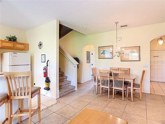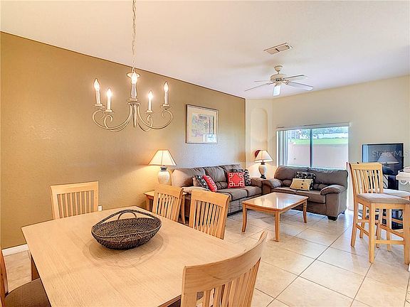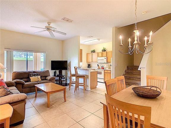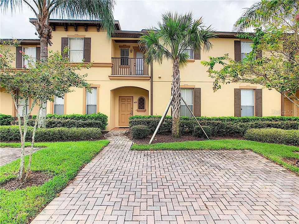 BACK ON THE MARKET! Original owner! Location, location, location! Front of the community on La Mirage! Building is also near the guard gate, adding security! Spacious 3-bedroom townhouse in Regal Palms, this has the same footprint as the 4-bedroom unit, but features THREE ENSUITES, one downstairs, and two upstairs! Step inside the foyer from the covered patio into the great room, where the living room, dining room, and kitchen all combine to form one large living space. The bedroom downstairs has an additional entry to the outside. Upstairs you will find two master bedrooms, both featuring tub/shower combos and walk-in closets. The front bedroom also has a walk-out balcony to enjoy the sunrises and sunsets, as well as hot air balloons drifting overhead in the mornings. There is a separate laundry ROOM upstairs with additional storage space if needed. The Tuscan-inspired resort is just a short drive to the attractions, and features an expansive clubhouse with a NEWLY RENOVATED bar and Frankie Farrells Bar and Grill; a fitness center; an arcade; a spacious resort pool with water slide, lazy river, and zero-entry pool; a sand volleyball court; a pool-side tiki bar; and a sundry shop. They are also building a new ice cream parlor! The community is also gated. The monthly HOA amount also includes external pest control, cable TV, and wifi. This is a successfully rented, FULLY FURNISHED villa that is waiting its next owner! Make sure to check out the 3D virtual tour as well as the video of the home!