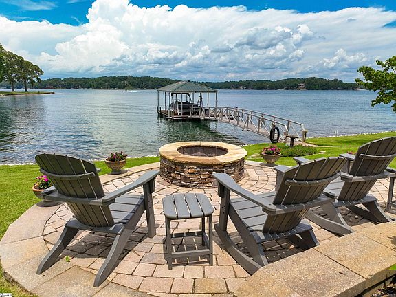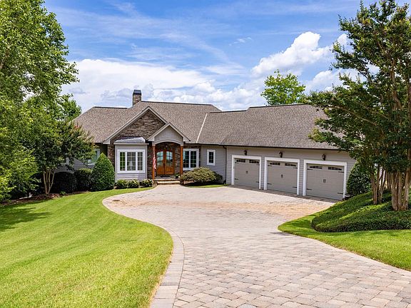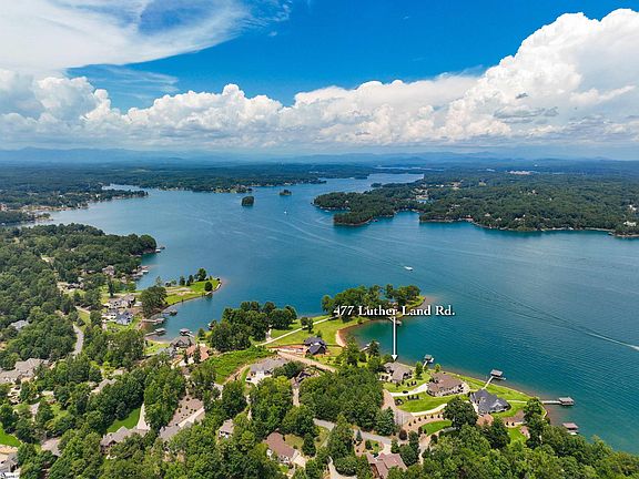Welcome to your dream lakefront home with panoramic views! This stunning home, built in 2014 by Kisker Construction, offers the perfect blend of luxury and comfort. Spanning approximately 4000 square feet, this meticulously designed property has 3 bedrooms (plus an additional lakeside room with closet nearby that is currently used as a 4th bedroom/bunk room), 3.5 baths, a home office, and a plethora of desirable features that will make you fall in love. As you step inside, prepare to be captivated by the panoramic lake views that greet you from every angle—and some that also provide mountain views! The spacious open floor plan allows for seamless flow between the living spaces, creating an inviting atmosphere for both relaxation and entertainment. Enjoy the sunrises in the morning and the shade in the afternoon as you relax on the EZ-Breeze screened porch, small deck (with mountain views), lower patio with fire pit, or on your private dock. The screened porch is also perfect for the cooler months with its own gas fireplace and EZ Breeze panels converting to a sun room. The kitchen is well appointed with high-end appliances including a gas cooktop and 2 wall ovens, ample counter space, large prep island, custom cabinetry and a nearby walk in pantry. Whether you're hosting a dinner party or preparing a family meal, this kitchen is ideal. The main level owner's suite provides his and her closets, soaking tub, double vanities, large tile shower and amazing sunrise views. There are 2 bedrooms (plus the bunk room) on the lower level, all with lake views, for your friends and family to enjoy. The property sits on a gently sloping waterfront lot with 175+/- of waterfront and houses a 26X30 Covered dock with boat lift just waiting for your family, friends, and boat! Additional features include a whole-home generator, ample space for outdoor activities, great storage space, large wet bar and recreation area, and hot tub. This property strikes the perfect balance between seclusion and convenience by car and by boat.