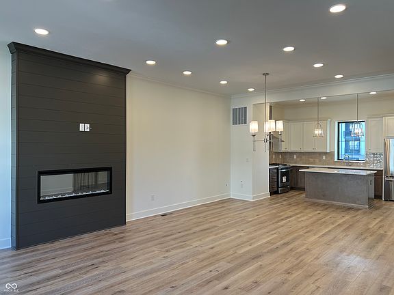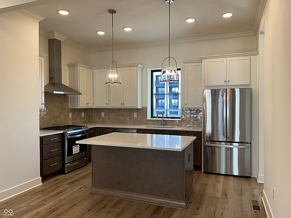Enjoy the lock-and-leave lifestyle in the heart of downtown Carmel with this luxurious, soon-to-be-completed townhome built by Old Town Design Group. The versatile entry-level bedroom with private WIC & bath is available for use as a private retreat or a functional home office. Upstairs you'll find an open-concept floor plan, with great room, dining, and kitchen visibility, plus a large outdoor living space off of the kitchen area. Prepare culinary delights in a well-equipped kitchen featuring quartz countertops, painted cabinetry, and stainless steel appliances, including a microwave drawer and a gas convection oven with built-in air fryer. The third floor boasts the conveniently located laundry room and 2 bedrooms, including the primary suite with floor-to-ceiling tiled shower and double vanities. Other amenities include: raised ceilings on all levels, additional media outlets, custom shelving in all closets and pantries, and an electric fireplace with painted accent wall in the great room. Relax by the community pool, stay active in the fitness center, or pamper your furry friend at the dog wash station -- all located within North End and available to residents. Also within the North End community, you'll find Indie Coffee Roasters, Ash & Elm Cider's Carmel Taproom, Fields Market Garden & Le Petit Gateau bakery, plus Freelands -- Carmel's newest farm-to-table restaurant. Walking paths leading to the Monon Trail allow for easy access to Downtown Carmel.