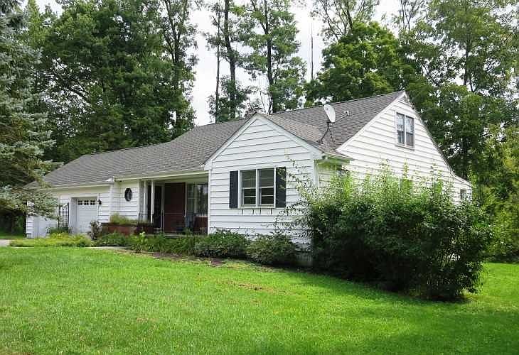 Absolutely sweet 50's expanded ranch home with gleaming wood floors and wood burning brick fireplace. Family room has 3-sides of windows overlooking the woods. Located equidistant from Rhinebeck Village & Rhinecliff (Amtrak) on lovely walking roads! Across from substantial historic estates and truly an opportunity to have a little Rhinebeck home never before on the market - The upstairs can further be dormered for enlarged space. Full basement and large 2-car garage provide substantial storage.