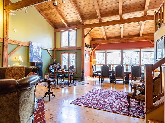 Seller offering 1% as concession towards BUYER to pay down loan POINTS! Nestled in the wood sits this spectacular custom post & beam residence with cathedral ceilings. The property features 3100sqft, 3 beds, 3 baths with 15+ private acres. This home features a 1st floor master suite, cathedral ceilings with exposed beams, hand nailed wide pine floors, kosher kitchen with double appliances, granite counters. The loft overlooks the kitchen and open living/dining room. The lower level boasts a large walk-out basement, hardwood floors, a wall of windows, family room, office/bedroom and an additional bedroom with full bath. Let's not forget the grand hidden wine cellar. There is ample storage included with the 2story attached garage! Conveniences include a living room pellet stove and generator hookup. With 435ft of road frontage there is potential for an additional lot. This home is a rare find with endless opportunities. Agents see remarks