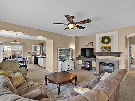 - Interior Features: Ceiling Fan(s), Fireplace-Gas, Kitchen Island, Liv/Din Combo, Live on One Level, Raised Ceilings 9+ft, Smoke Detector(s), Walk-In Closet(s), Wash/Dry Connection, Kit/Din Combo, Garden Tub, Counters-Solid Srfc, Garage Door Opener(s)