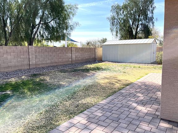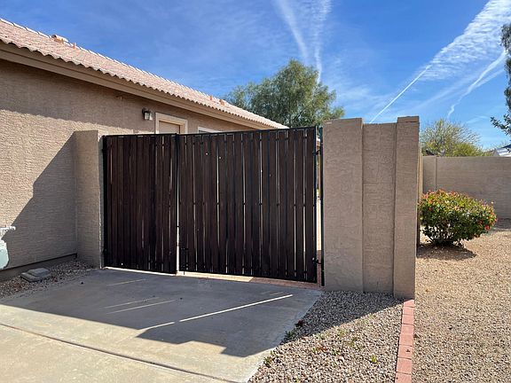 Fully updated, single level split floor-plan home with RV Gate, large back building for storage or workshop, SPA/hot tub and no HOA. Beautiful wood plank tile, carpet in bedrooms, two-tone paint, ceiling fans and wood faux blinds. Gorgeous kitchen features white cabinets, granite counters, island & stainless steel appliances, including refrigerator. Washer & Dryer included. Primary bedroom offers full length wall closets, upgraded walk-in shower & double sinks. Private backyard with covered patio, grass, large workshop/shed & hot tub. RV Gate with additional parking. Home backs to a greenbelt/playground! Garage features cabinets, epoxy floors, Soft water, RO system. MLS 6361359 Extra parking behind RV Gate or inside storage shed. 1.5% renters insurance. No Smoking. Pets to be approved by owner.