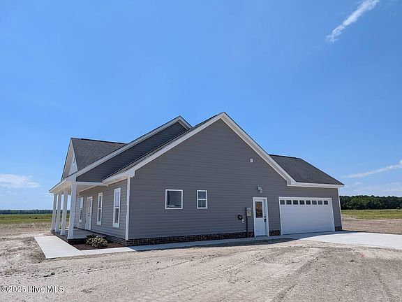 Introducing a stunning newly built 3-bedroom, 2-full bathroom home situated on a sprawling 5 acres of land. This property boasts a double car garage and features an array of desirable amenities, making it the perfect place to call home. Step inside to discover luxurious LVP (Luxury Vinyl Plank) flooring throughout the main living areas, providing durability and style. Each bedroom is cozy with plush carpet, ensuring comfort and warmth. The heart of the home is the expansive kitchen, complete with a convenient butler's pantry, ideal for meal preparation and entertaining. The open layout features cathedral ceilings, enhancing the spacious feel and allowing ample natural light to flow through the home. A large patio just off the kitchen invites you to step outside and enjoy the calmness of country living. For those quiet mornings, relax on the covered front porch and take in the peaceful surroundings. With a location that is conveniently located to VA, Elizabeth City or the Outer Banks, you are just a short drive to all the activities and amenities. With NO HOA, you have the freedom to make this property truly yours. Move-in ready and waiting for you to create lasting memories—don't miss out on this exceptional opportunity! Let's get your showing schedule, it is better in person!
