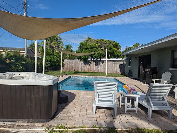 SNOWBIRD READY! Private Pool Home Tropical Oasis in Merritt Island - Fully Furnished! Availability: Begins Jan 11th | Minimum Stay: 30 days | Flexible lease terms Discover the charm of coastal living in our beautifully furnished beach home, nestled in the vibrant heart of Merritt Island. Perfect for traveling professionals or those exploring housing options in the Space Coast area. The Home: Three bedrooms, including a master with a king-sized bed and luxury cooling mattress, a second bedroom with stylish bamboo furniture and queen bed, and a versatile third room set as an office (convertible to a bedroom upon request). Outdoor Paradise: Private backyard haven featuring a 3-person hot tub (seasonal availability), custom-tiled in-ground pool, sun loungers, fire pit area with Adirondack chairs, outdoor shower, and expansive sun shades amidst lush tropical landscaping. Modern Amenities: Fully updated kitchen with stainless steel appliances, open shelving, shiplap backsplash, and a cozy dining area with abundant natural light. Living room with brand new loveseat and two sitting chairs complete with a 50" smart TV in the living room. Extras Included: One-car garage, laundry room with new appliances. Pet-friendly policy no size or breed restrictions (Deposit and pet rent may apply). Ideal Centralized Location: Close to golf courses, pristine beaches, ocean activities, and iconic attractions like NASA and Kennedy Space Center. Minutes away from Cocoa Beach and easily accessible from Orlando International Airport (40 mins). Local Attractions: Cocoa Beach is about 10 minutes away. Explore Merritt Island at the Kennedy Space Center. National Wildlife Refuge, Jetty Park, Banana River, Cocoa Beach, and Cape Canaveral. Note: Please no solicitations. We are committed to providing an equal housing opportunity. ENTIRE PRIVATE HOME, POOL and HOT TUB ... FULLY FURNISHED . .. UTILITIES INCLUDED... Ready for snowbird season. Pet friendly. Included in all leases shorter than 12 months are utilities including propane, electricity, water, sewer, garbage collection, high-speed internet, as well as weekly lawn care AND pool/hot tub maintenance (approx $600 in total per month). We offer flexible leasing options. Stay for as little as 1 month or up to 18 months, with prices varying depending on the lease duration. Please get in touch to discuss your specific needs and pricing!