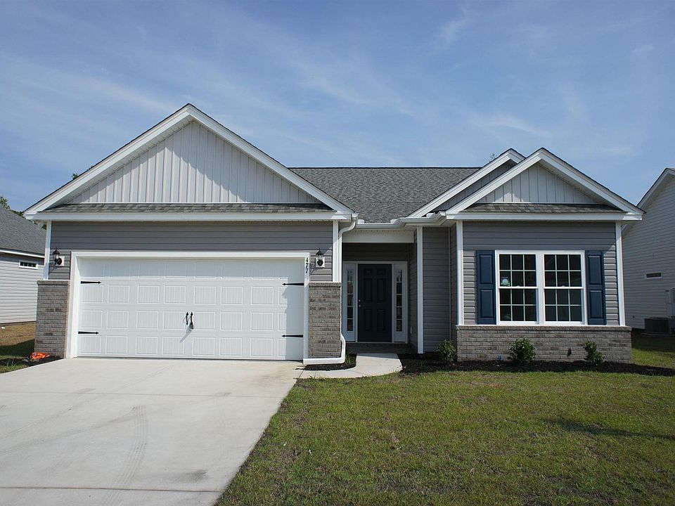 Beautiful Hatteras C floor plan in the new Ocean Palms community. This terrific open floor plan, 3 bedroom, 2 full bath home will have grey wood-look vinyl flooring everywhere. Staggered-height white painted Shaker-style cabinetry and a convenient granite kitchen island combine to give you the wow factor you're looking for, and abundant recessed lighting, pendants over the island, plus two large windows in the adjacent dining area flood the room with light. There's even a large walk-in pantry and an office! A French door at the back wall of the great room leads to the screened rear porch and the large separate patio beyond. The spacious owner's suite features a long vanity, an oversized walk-in shower, plenty of storage in the linen closet and a huge walk-in closet. Two additional bedrooms and a full bath are tucked off on their own hallway, for privacy. All of the homes in Ocean Palms come standard with the luxury of natural gas (tankless water heater, gas heat, and gas range). The two car garage is completely trimmed and painted. Ocean Palms is conveniently located near shopping, restaurants, schools and world class medical offices and hospitals, and only a short golf cart ride to Surfside Beach's gorgeous beach and the beautiful Atlantic Ocean. Other floor plans and inventory homes may be available, and CUSTOMIZATION OF FLOOR PLANS IS POSSIBLE!!! Community Pool and Cabana are now open! Photos are of a completed, similar home and may have different features.