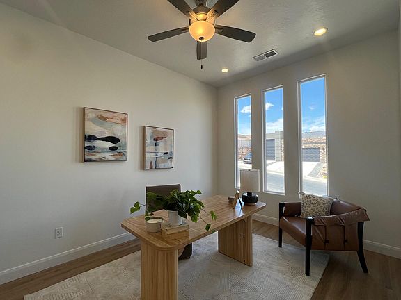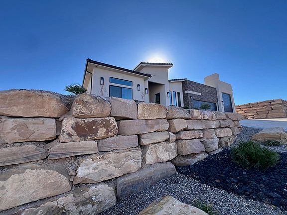 COMPLETED NEW CONSTRUCTION! Unobstructed views of the bluffs from the great room! Backs up to open space! Single level living! 34 ft,10 in RV garage! This home has it all. Upgrades throughout: Majestic White cabinets with a warm knotty alder island, beautiful granite counters, and upscale GE CAFE appliances in the kitchen. Granite counters in the bathrooms, 3 full baths, and the owner's suite is spacious and elegant. Located just minutes from downtown, the freeway, Snow Canyon, and hiking trails.