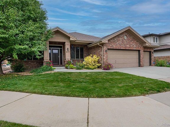 Welcome to this picturesque brick ranch in Green Mountain Vistas community! Immaculate curb appeal and an attached three-car garage greet you. Gleaming hardwood floors and sweeping natural light create a warm and welcoming atmosphere. A grand foyer leads into the open-concept main living space through a statement front door. Soaring vaulted ceilings and beautiful built-in shelves accent the living room. Cozy up with loved ones in the cool winter months around the gas fireplace with stunning stone tile hearth. The kitchen is a bright and open space ready to ignite your culinary creativity. Light wood cabinets, granite countertops, stainless-steel appliances, and abundant windows inspire you as you whip up a meal. A breakfast nook cloaked in natural light by a bay window ensures your guests will always have a seat at your table. Access the back patio from a door off the kitchen. A spacious formal dining room will make entertaining a breeze. A private study in the front of the home offers striking built-ins and glass French doors to keep you focused during your workday. When you’re ready to wind down, retreat to the primary suite, a relaxing oasis with abundant natural light, a walk-in closet, and plush carpet. Private patio access allows you to step outside and have a cup of coffee whenever you please. The primary en suite bath is a luxurious space with an expansive dual sink vanity, jetted soaking tub, custom tile shower, and water closet. Two additional bedrooms and a full bath round out the main level. In the finished basement, a sprawling open living space would make a wonderful bonus room, theater room, or game room! An additional bedroom and updated full bath your guests feel right at home. Outside, the back patio provides the perfect space for an outdoor kitchen and dining area. A partial view of the mountains and foothills to the west together with lush grass and mature greenery make this a perfect escape in your own backyard.