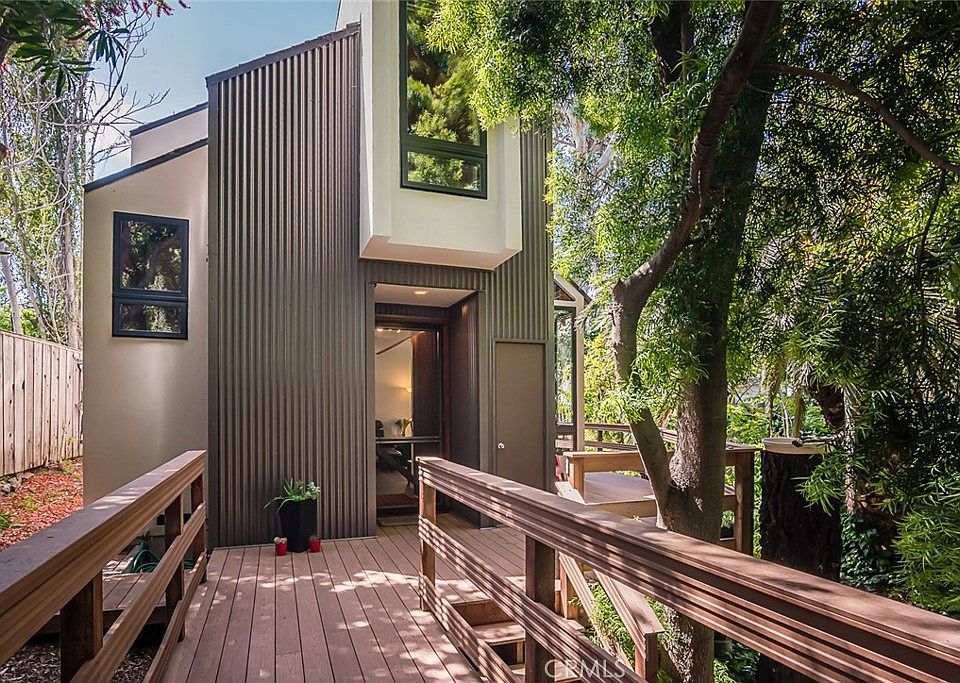 Privacy in the City! A wooden foot bridge takes you into this Alice in Wonderland parcel with a seasonal creek running through it. Just 6 blocks to downtown, a very special, recently renovated home is nicely tucked into the trees and includes a separate guest unit. The 1 bedroom 1 1/2 bath home boasts Anderson windows, metal and smooth stucco siding, lots of closet space with custom builtins, and a vaulted ceiling that overlooks the creek and yard areas. The home blends beautifully with it's surroundings including the wood ceilings, wood detailing throughout the residence and three custom leaded glass windows. The spacious deck lends itself to entertaining and ends at a private patio perfect for outside dining. Upgrades include a new electric panel for this all electric home, and a very efficient heat and air system. The design conscious remodeling of this secluded home and guest unit and the rarity of this parcel may never again be found in San Luis Obispo. Hurry to see!
