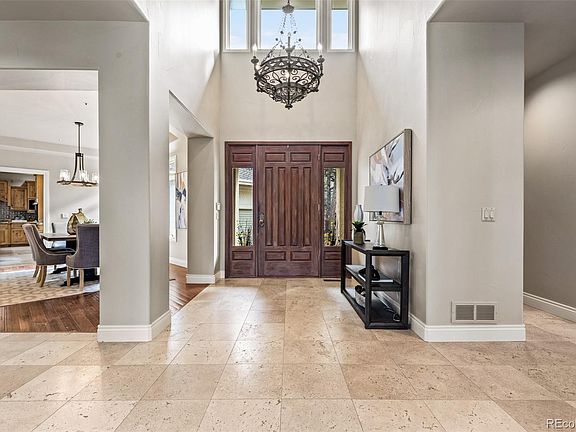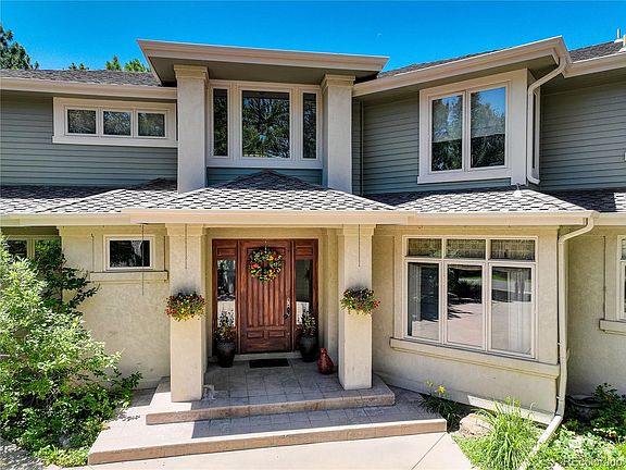 SELLERS OFFERING AN INTEREST RATE BUY DOWN! Attention to every detail has gone into updating this incredible property in the much sought after neighborhood of Castle Pines Village. This stunning home was remodeled and transformed, so that even the most discerning will fully appreciate and enjoy! Vaulted ceilings, walls of windows, wood beams, hickory floors, new carpet, new interior paint and stone accents just begin to describe this luxury mountain contemporary. A light - filled, open floor plan allows the gourmet kitchen to visually spill into the casual dining area and gracious great room. The kitchen is fully equipped with high end, quality appliances, stone counter tops, and a spacious island. The main floor also hosts a formal dining room, great room (with feature fireplace), and a classic library / office. From the foyer, follow the grand wrought iron and wood staircase to the upper level composed of four large bedrooms, including a lavish primary, and five piece en suite bathroom. The high ceiling walk-out basement hosts a 5th bedroom that could also serve as a second office, a cork floored and mirrored gym, and a large den. Nestled amongst a picturesque and tree - lined backdrop, on a large private lot (that affords great privacy and tranquility) with a large deck with customized awnings for shade to watch abundant wildlife. The Village at Castle Pines is known for it's countless amenities, including : over 13 miles of walking / hiking trails, 3 neighborhood pools, tennis/pickle ball courts, playgrounds, playing fields, picnic areas, an adult fitness center, plus 2 ( members only ) golf courses .. gated and secured community with access to Douglas County’s top rated schools. This is THE home you've been waiting for !!