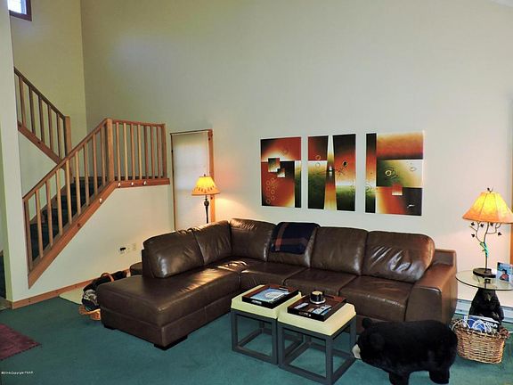 PERFECT LOCATION!! for this 3 bedroom, 2 bath townhome which is in walking distance to the slopes at Camelback Mountain. This well maintained home has an open kitchen with 2 breakfast bars which opens to both the living and dining area. Living room is spacious and with wood burning fireplace. There is a large deck off the dining room with nice views of the slopes. There is a unfinished basement great for storage or a great hang out for the kids. This home is perfect for vacation, rental or full time home. Just minutes to Camelback Ski Area. CamelBeach, Mt Airy Casino, Rt 80 and the Crossing Outlets.