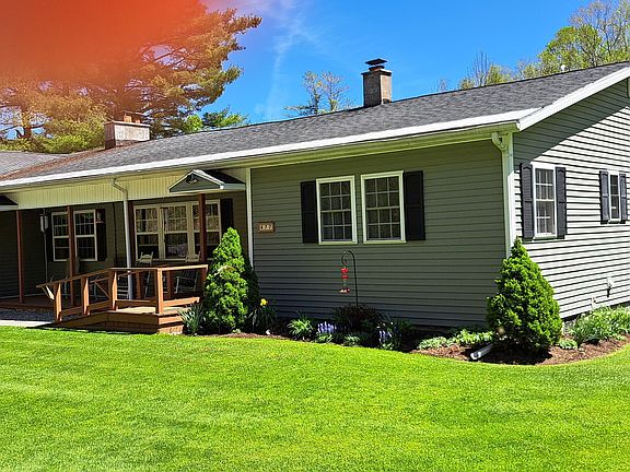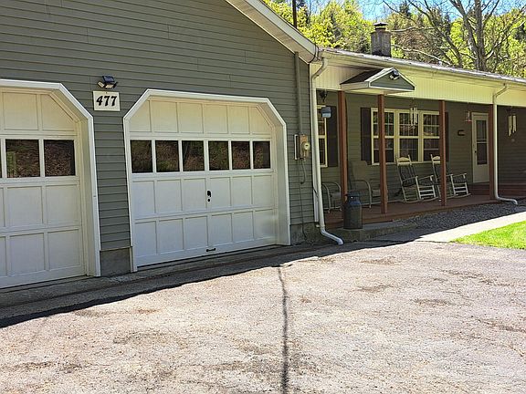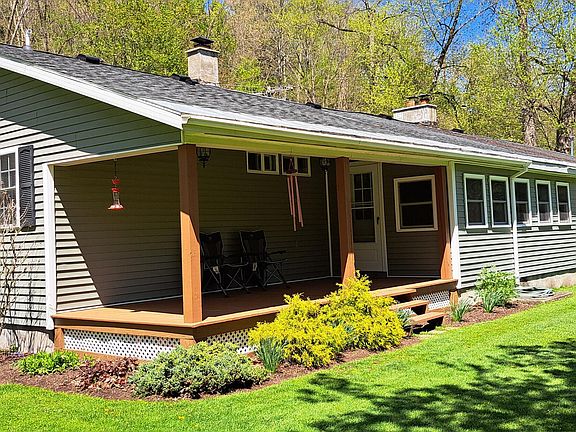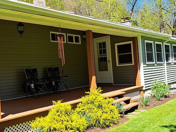 A great ranch home with a lot of character and extras. Advertised as a 2 bedroom but the family room could easily be turned into a 3rd, handicapped ramp that can be removed and a handicapped bathroom. Both the front and back of the home have open porches. The large kitchen is welcoming for a family gathering. A 2 car garage with a steel beam w/motor hoist. A2 separate driveways. It is a must see home. Relax by the fire pit and listen to the creek. Raised flower beds are already in place.