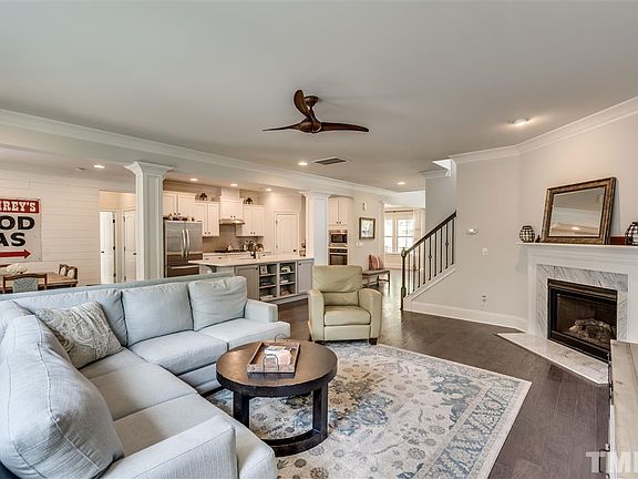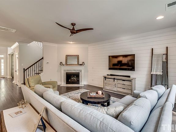 Beautiful home moments from the heart of Pittsboro, in much sought-after neighborhood The Parks at Meadowview. Step inside to find an open floor-plan with large windows adding natural light throughout the house. Home features a gourmet kitchen, quartz countertops in both the kitchen and master bath. The marble gas fireplace and shiplap walls creates an inviting living area open to the kitchen. Crown molding throughout both levels of the home combined with 10' ceilings downstairs and 9' ceilings up.